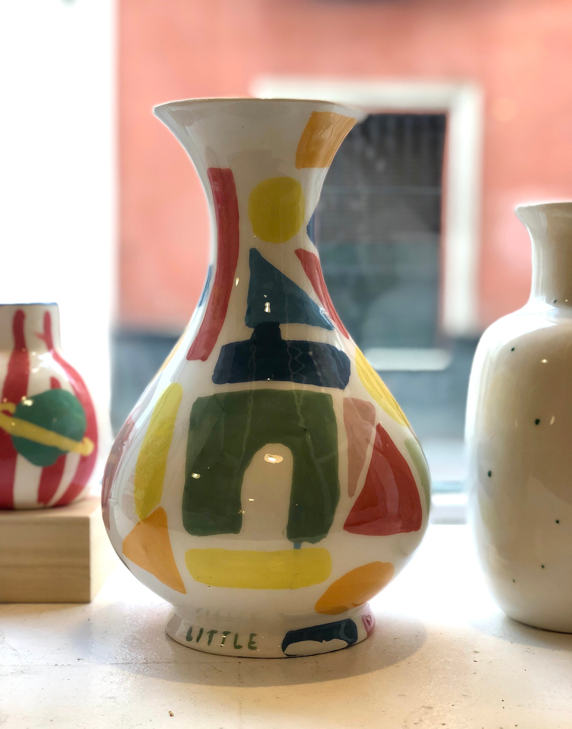 Jarrón hecho y pintado a mano por Little. Altura aproximada 27cm.