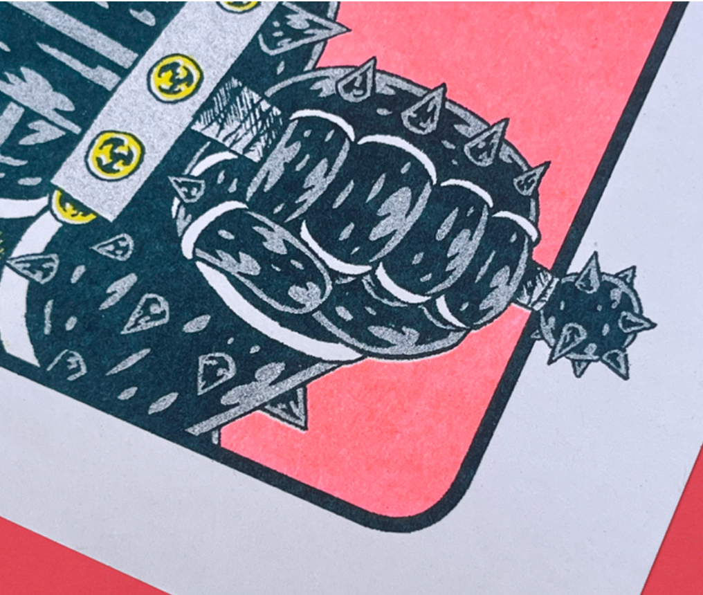 Impresión riso en amarillo, rosa flúor y verde bosque