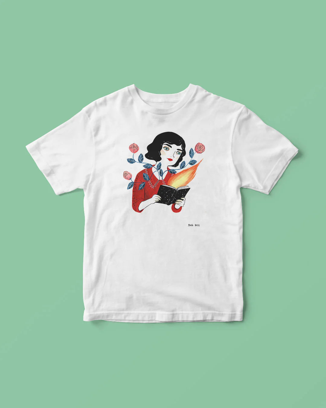 “Lectora” es una ilustración de María Hesse que habla del fuego que arde cuando una historia te toca el alma.