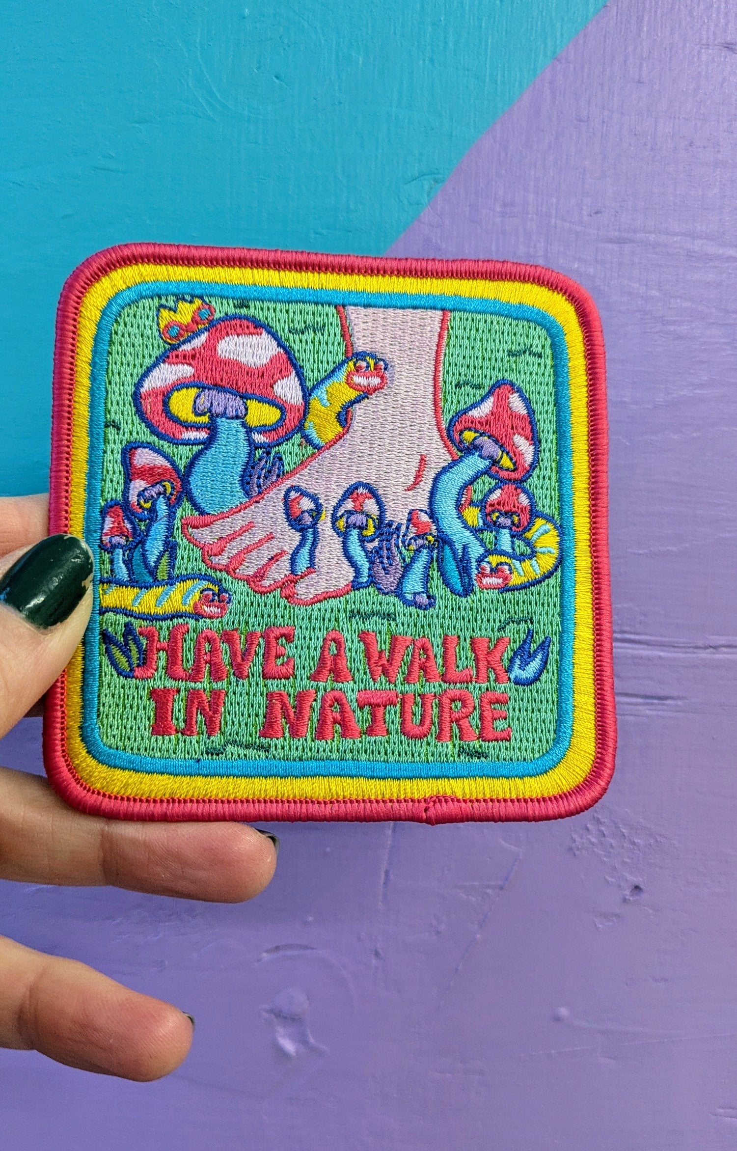 Parche "Da un paseo por la naturaleza" para planchar o coser, totalmente bordado | ¡Para los amantes de los largos paseos por el bosque o del campo!